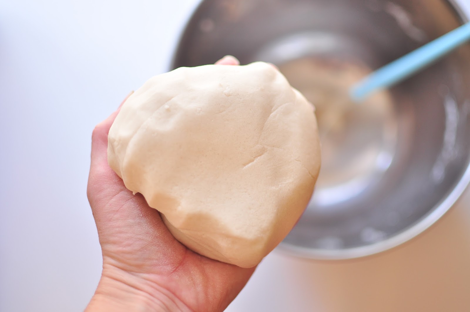 - Mix all together and knead until the dough is very smooth. The longer you knead, the less “sandy” the appearance of the dough and ornaments will be. I like them both, but with less kneading, the ornaments tend to look a bit more rustic.